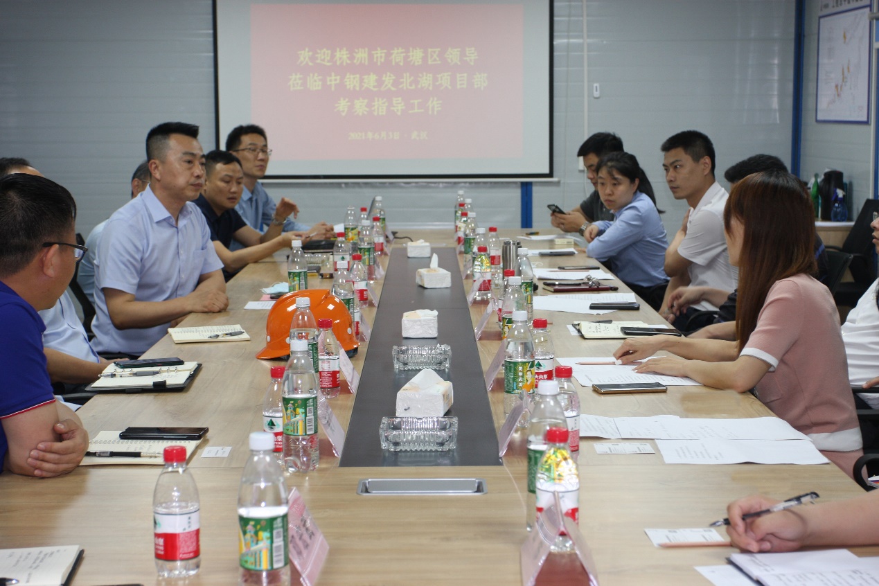 座谈会上,总经理赵东兴首先对考察组一行的到访表示热烈欢迎,并向荷塘区政府对公司发展给予的支持表示感谢。他指出,中钢建发在投资建设、片区综合开发等方面实力雄厚,与荷塘区有较高的战略契合度。同时,他肯定了荷塘区良好的区域优势和营商环境,认为这些因素对企业发展具有重要意义。随后,武汉分公司负责人胡欣向考察组讲解了北湖项目的在建情况,并详细介绍了中钢建发的发展历程、核心技术、以及未来发展规划。